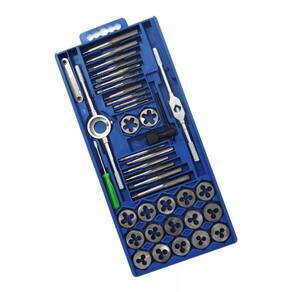Jogo de macho e tarracha com 40 peças, ideais para gerar roscas internas em furos para o rosqueamento de parafusos, fusos ou prisioneiros.