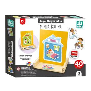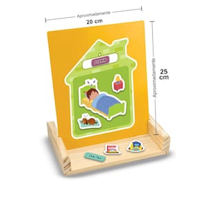 Criar uma rotina ajuda a criança e entender o que vem antes e depois em seu dia-a-dia, aumenta sua confiança e desenvolve a autonomia. Com o quadro Minha Rotina, a criança vai fazer uma linha do tempo com as cartinhas de atividades (acordar, escovar os dentes, tomar café ?). A partir daí, ela vai repetir a cena no painel de metal, colocando as peças de imã de acordo com cada atividade.