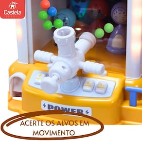 Diversão garantida com o castela jogo máquina de pinball amarela cbs1054 O brinquedo possui duas formas de jogar: um modo para acertar os alvos em movimento e outro no estilo clássico de pinball. Conta com placar em led, bolinhas e cabo usb inclusos, proporcionando ainda mais interatividade para as crianças.