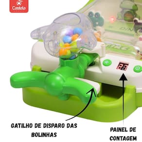 Jogo máquina de pinball dinossauro verde som luz - castela Descrição do produto: