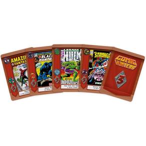 Os jogadores são colecionadores de quadrinhos da Marvel, o objetivo é formar a coleção mais completa possível, considerando raridade, quantidade e detalhes específicos como primeiras aparições de personagens, batalhas importantes para a saga e edições Número 1. Os jogadores percorrem 04 tipos de locais temáticos para adquirir seus HQ’s: lojas, sebos, convenções e sites de leilão. este produto contém: 1 Tabuleiro 141 Cartas 30 Tokens 1 Manual 1 Bloco de pontuação