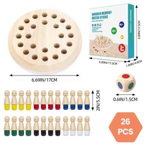 Descrição do produto: ? Um tabuleiro de xadrez tem 24 pequenos furos. Diferentes furos são inseridos nos pequenos orifícios. A parte inferior das peças é colorida. Quando as crianças colocam peças de xadrez, elas devem se lembrar da posição de cada cor. Então o jogo começa. Role os dados. Os 6 lados dos dados têm 6 cores. Qual cor deve ser encontrada no tabuleiro de xadrez. Pode não ser desenhado uma vez. Não importa. ? Neste momento, você deve se lembrar da cor que é desenhada. Da próxima vez que você rolar essa cor, você pode facilmente retirá-la. Todo mundo transforma os dados para encontrar a cor que eles rolam. ? Desenhe para jogar, o jogo acabou. O jogador com o maior número de empates ganhará. Especificações: Nome: Xadrez com memória colorida Material: madeira ecológica de alta qualidade Dimensões do pacote: 18,5 * 5,5 * 19 cm Idade aplicável: 3 anos ou mais Peso: 0,5 kg Como brincar: 1. Coloque todo xadrez com memória no tabuleiro; 2. Agite os dados; 3. Pegue um peão do tabuleiro. Se o topo dos dados de uma peça de memória for da mesma cor, a peça de memória é mantida e a pessoa que ganha mais peças de memória ganhará o jogo. Ou você pode definir o padrão vencedor para obter 4 mesmas cores ou 6 xadrez de cores diferentes. Conteúdo da embalagem: 24 varetas coloridas. 1 dado 1 disco - Jogo divertido de aprendizagem de memória: jogos de quebra-cabeça de madeira e brinquedos educativos não precisam ser entediados. Este jogo de memória e combinação ajuda no desenvolvimento cognitivo, coordenação óculo-mão e habilidades de resolução de problemas. - ??Exercite a memória? – Na idade jovem, o jogo pode melhorar o cérebro do seu filho. Melhora o QI, aumenta a ligação com os pais e torna seus cérebros precisos. Ele também evita que dependam dos dispositivos. - ??Como jogar? – pode ser jogado por 2 a 6 jogadores. Insira os pinos de madeira no quadro de pinos aleatoriamente com cores escondidas e tente lembrar a cor de cada pino. Existem diferentes maneiras de jogar o jogo. Instruções sobre como jogar este jogo de memória estão incluídas na caixa em inglês. - Adequado para crianças de 3 a 100 anos – Este ótimo jogo de tabuleiro para a família vai agradar tanto os jovens quanto os adultos. É um ótimo presente para crianças pequenas, familiares e pessoas que sofrem de demência precoce. O jogo é divertido de jogar, fácil de aprender ou fazer as próprias regras e pode ser mantido por um longo tempo. - Material de madeira suave: feito de material de madeira seguro e tinta de água não tóxica, permite que você use com tranquilidade. Com uma camada de superfície lisa pintada, não machuca as mãos das crianças facilmente. Tamanho: 17,5 × 17,5 × 5,5 cm/17,5 x 17,5 x 2,5 polegadas; Material: madeira.