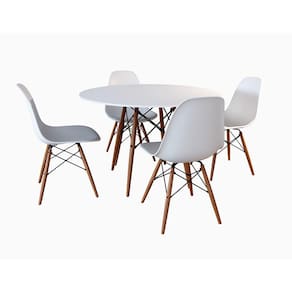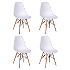 JOGO MESA 4 CADEIRAS BRANCAS EAMES EIFFEL 90 CM BASE MADEIRA TAMPO BRANCO No quesito decoração o Jogo de Mesa 4 Cadeiras Brancas Eiffel se destaca pelo design moderno e sofisticado. A Cadeira Eiffel é confeccionada em policarbonato, sua base é em Madeira maciça, o que confere total resistência e conforto, o tampo é confeccionado em MDF com pintura impermeável garantindo melhor durabilidade ao produto, sua base é em Madeira maciça . O Jogo de Mesa 4 Cadeiras Eiffel da vida ao ambiente além de combinar com todos os tipos e cores de móveis.