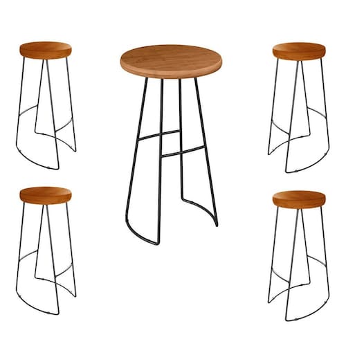 Apresentamos o Jogo Mesa Bistrô 4 Banquetas Alta Bar Cozinha Balcão, um conjunto exclusivo que combina a elegância da Mesa Bistrô Aurora com a praticidade das Banquetas Altas Aurora. Com tampo em madeira maciça de Peroba Rosa, estrutura resistente em aço carbono, e design inspirado nas últimas tendências europeias, este kit proporciona charme e funcionalidade para sua cozinha, bar ou balcão. As banquetas, com assentos em madeira maciça e estrutura robusta, completam o conjunto, oferecendo um ambiente moderno e aconchegante.