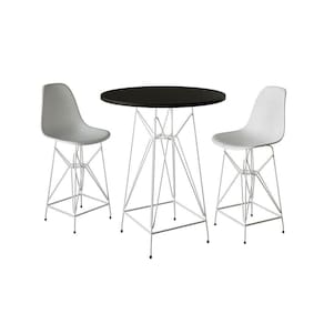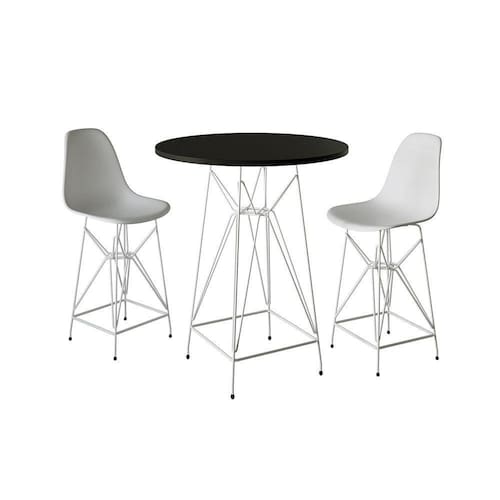 Jogo Mesa Bistrô Eames Preta 60cm 2 Banquetas Branca Base Ferro BrancoO Jogo de Mesa e Banqueta Bistrô Eames possui um design moderno cheio de charme, fabricado com material de alta qualidade, proporcionando o melhor conforto e sem perder o estilo. A banqueta possui uma curvatura ergonômica que se encaixa perfeitamente ao corpo, ficando ainda mais completo com a mesa.Tipo: ConjuntoModelo: Eames BistrôCor Tampo da Mesa: PretoCor Assento da Banqueta: BrancoCor da Base: BrancoCARACTERÍSTICASBase: FerroTampo da Mesa: MDFAssento: Plástico polipropilenoDIMENSÕES DA BANQUETAAltura: 101,5cmAltura assento até o chão: 70,5cmLargura: 40cmComprimento: 40cmDIMENSÕES DA MESAAltura: 100cmDiâmetro: 60cmLargura base: 40cmComprimento base: 40cmIMAGENS MERAMENTE ILUSTRATIVAS, PODENDO HAVER UMA PEQUENA VARIAÇÃO NA COR DEPENDENDO DE CADA TELA OU MONITOR.Jogo Mesa Bistrà Eames Preta 60cm 2 Banquetas Branca Base Ferro Branco