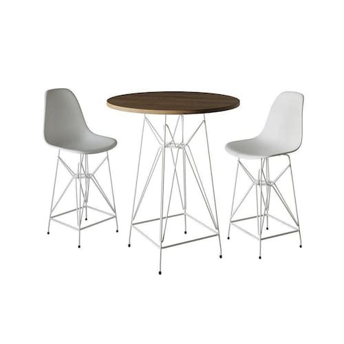 Jogo Mesa Bistrô Eames Tampo Amêndoa 60cm 2 Banquetas Branca Base Ferro BrancoO Jogo de Mesa e Banqueta Bistrô Eames possui um design moderno cheio de charme, fabricado com material de alta qualidade, proporcionando o melhor conforto e sem perder o estilo. A banqueta possui uma curvatura ergonômica que se encaixa perfeitamente ao corpo, ficando ainda mais completo com a mesa.Tipo: ConjuntoModelo: Eames BistrôCor Tampo da Mesa: AmêndoaCor Assento da Banqueta: BrancoCor da Base: BrancoCARACTERÍSTICASBase: FerroTampo da Mesa: MDFAssento: Plástico polipropilenoDIMENSÕES DA BANQUETAAltura: 101,5cmAltura assento até o chão: 70,5cmLargura: 40cmComprimento: 40cmDIMENSÕES DA MESAAltura: 100cmDiâmetro: 60cmLargura base: 40cmComprimento base: 40cmIMAGENS MERAMENTE ILUSTRATIVAS, PODENDO HAVER UMA PEQUENA VARIAÇÃO NA COR DEPENDENDO DE CADA TELA OU MONITOR.Jogo Mesa Bistrà Eames Tampo AmÃndoa 60cm 2 Banquetas Branca Base Ferro Branco