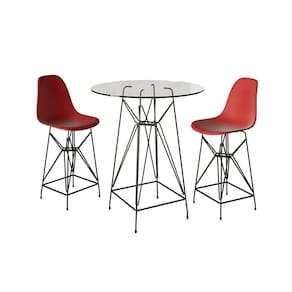 Jogo Mesa Bistrô Eames Vidro 60cm 2 Banquetas Vermelha Base Ferro PretoO Jogo de Mesa e Banqueta Bistrô Eames possui um design moderno cheio de charme, fabricado com material de alta qualidade, proporcionando o melhor conforto e sem perder o estilo. A banqueta possui uma curvatura ergonômica que se encaixa perfeitamente ao corpo, ficando ainda mais completo com a mesa.Tipo: ConjuntoModelo: Eames BistrôCor Tampo da Mesa: VidroCor Assento da Banqueta: VermelhoCor da Base: PretoCARACTERÍSTICASBase: FerroTampo da Mesa: VidroAssento: Plástico polipropilenoDIMENSÕES DA BANQUETAAltura: 101,5cmAltura assento até o chão: 70,5cmLargura: 40cmComprimento: 40cmDIMENSÕES DA MESAAltura: 100cmDiâmetro: 60cmLargura base: 40cmComprimento base: 40cmIMAGENS MERAMENTE ILUSTRATIVAS, PODENDO HAVER UMA PEQUENA VARIAÇÃO NA COR DEPENDENDO DE CADA TELA OU MONITOR.Jogo Mesa Bistrà Eames Vidro 60cm 2 Banquetas Vermelha Base Ferro Preto