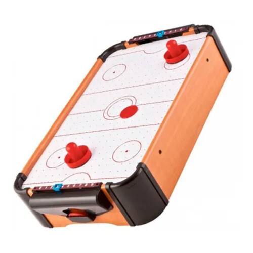 Conteúdo Incluso: O kit acompanha 1 mini mesa de air hockey, 2 discos, 2 rebatedores plásticos, 2 gols, além de um manual de instruções em português e um jogo de ferramentas para montagem.