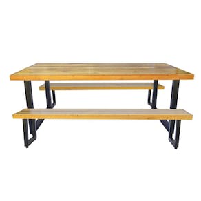 Madeira Maciça Formato: Retangular Material do Tampo: Madeira Nobre e Maciça Material dos Assentos: Madeira Nobre e Maciça Material dos Pés: Ferro Acabamento dos Pés: Pintura Epóxi Eletrostática Nivelamento dos Pés: Sim