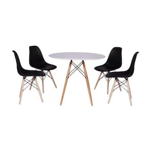 Jogo Mesa Jantar Redonda Eiffel 90cm Branca Mdf Com 4 Cadeiras Moderna Charles Eames Pretas - Preto