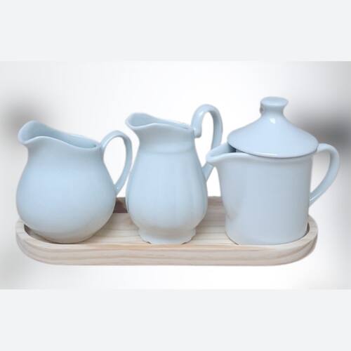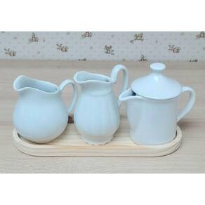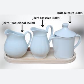 Jogo Mesa Posta, Jarras e Bule - Bule 300ml + Jarra clássica 300ml + Jarra Tradicional 350ml - Kit Porcelana Branca