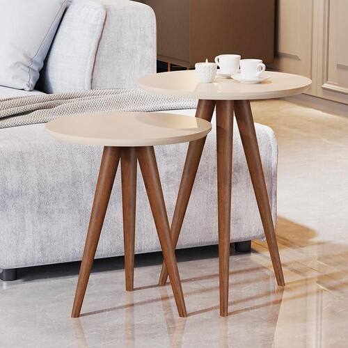 Duas Lindas Mesas de Apoio feitas em 100% MDF e acompanhada com Três Pés em palitos de madeira.