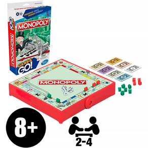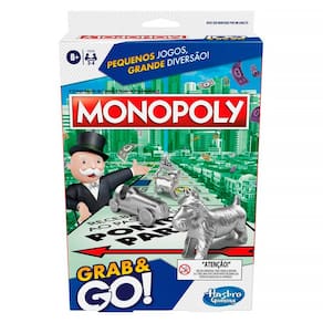 Plim plim! O clássico jogo de tabuleiro Monopoly agora está disponível em uma versão portátil que garante diversão em qualquer lugar. O Monopoly Grab and Go traz toda a emoção de comprar, vender e negociar imóveis, com a mesma dinâmica do jogo tradicional, mas em um formato compacto e prático. As cartas Sorte e Cofre podem mudar o jogo. Elas vão enriquecer um jogador ou mandá-lo para a prisão? Essa versão em miniatura do famoso jogo para família mantém o espírito competitivo e educativo, incentivando o raciocínio lógico e a paciência. E não é um simples jogo para crianças: ele ensina noções básicas de matemática e educação financeira, já que os jogadores precisam administrar dinheiro, planejar estratégias e superar adversários. Essa versão de viagem foi desenvolvida para 2 a 4 jogadores, sendo perfeita para crianças a partir de 8 anos e adultos. O tabuleiro dobrável vira uma prática caixa para armazenar as cartas e as pequenas peças e casas de plástico, garantindo transporte fácil e rápido armazenamento. Assim como no Monopoly clássico, o objetivo é conquistar propriedades, erguer casas e hotéis, negociar com os outros jogadores e alcançar a vitória. Um dos mais icônicos jogos de tabuleiro, o Monopoly Grab and Go é excelente para viagens de carro, avião, trem entre outros.