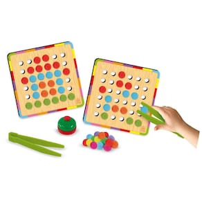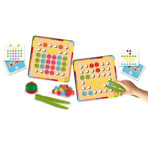 Conteúdo Completo: Inclui uma placa de madeira, uma pinça e 112 pompons, garantindo tudo o que é necessário para a brincadeira.