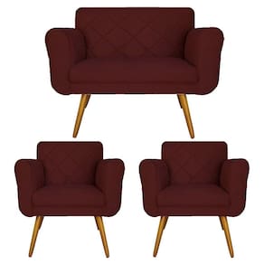 Jogo Namoradeira e 2 Poltrona Decorativa Para Recepção Isabella Suede Vermelho Bordô - LM DECOR