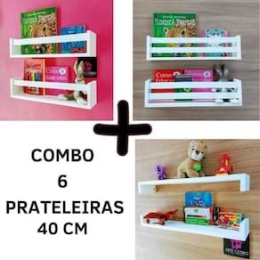 Jogo De Nichos Infantis Porta Livros e Brinquedos Prateleira Quarto Infantil 6un 55cm Prateleiras enviadas montadas para você, de acabamento perfeito. Qualidade comprovada por nossos clientes Fabricação da Arte Cedro decor Pronta para enviar O que vem: 2 Prateleiras porta livros, brinquedos e multiuso. 2 ripas frontais 2 prateleiras porta livros, brinquedos e multiuso. 1 ripa frontal 2 prateleiras modelo U decorativas de parede. Kit instalação dos produtos. Com este Jogo de Nichos você vai decorar e organizar todos os ambientes da sua casa. Pode ser instalado em várias posições de acordo com sua necessidade. Produto perfeito para qualquer área. No quarto pode ser Utilizado como porta livros, pelúcias, brinquedos, enfeites. No banheiro como porta xampu, cosméticos, papel higiênico. Pode ser também fixado invertido para funcionar como cabideiro ou porta toalha. Na cozinha é utilizado como porta temperos, condimentos, potes, etc. Organizador de Sala de leitura, expositor de cosméticos em salão de beleza. Estante muito versátil, com uma infinidade de possibilidades para toda sua casa. Fácil instalação, bastando fixar na parede. Suporta até 8 kilos cada. Material 100% MDF 15 mm. Acabamento real do mdf, superior á pintura em qualidade e durabilidade Produzido com fita de borda em PVC, incomparável ás de papel utilizadas no mercado MEDIDAS 55 CM comprimento. 12 CM altura. 10 CM largura. Marca: Não Informado