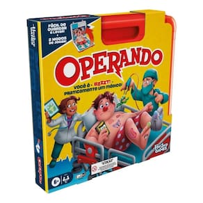 Você é - BZZZ! - praticamente um médico. É o jogo infantil favorito com atualizações! Nesta edição de Operando, o jogador escolhe entre dois modos de jogar: clássico no modo Hospital ou contra o relógio no modo Emergência. Modo Hospital: os jogadores seguem as cartas de curativo. O suspense aumenta enquanto operam Pedro Paciente ou - BZZZ - seu nariz vermelho acende! No modo Emergência, a corrida é para remover o maior número possível de machucados antes que o tempo acabe. Mas cuidado! Se a pinça atingir a lateral, Pedro Paciente arrotará, gritará e emitirá outros sons hilários para muita risada! Em ambos os modos, quem remover o maior número de machucados vence - e “cura” o paciente. Esse jogo pré-escolar vem em uma maleta de transporte porta-tudo para armazenamento, portanto, é um ótimo jogo para crianças levarem a qualquer hora e a qualquer lugar.