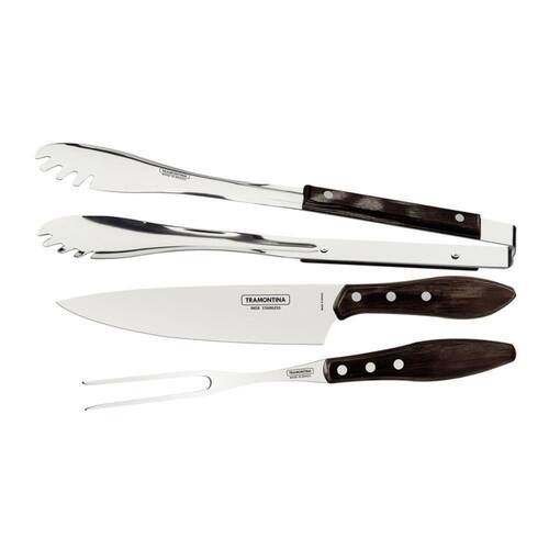 Jogo para Churrasco 3 Peças em Aço Inox com Cabo Castanho Polywood Tramontina - Na sua casa!