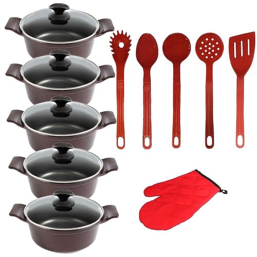 Jogo Panela Cereja Cerâmica Talher Vermelho Javali AAL 16A24