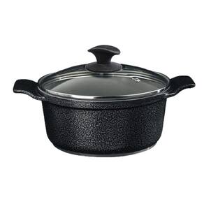 Especificações Técnicas 16 a 24cm: Revestimento Externo: Alumínio Fundido Preto Craqueado. Revestimento Interno: Antiaderente em Cerâmica cor Cinza. Alça Alumínio Tampa de Vidro.