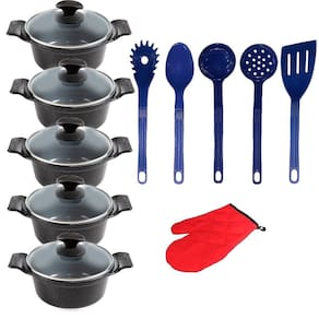 Jogo Panela Preto Liso Cerâmica Talher Azul Javali AAL 16A24