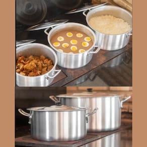 Este conjunto de caçarolas de alumínio é perfeito para quem busca qualidade e praticidade na cozinha. Feitas em alumínio durável e resistente, essas caçarolas oferecem excelente condução de calor, proporcionando cozimento uniforme e eficiente para suas receitas.