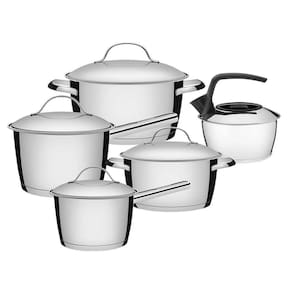 Jogo de Panelas 4 Peças + Chaleira Allegra em Aço Inox Fundo Triplo Tramontina - Na sua casa!