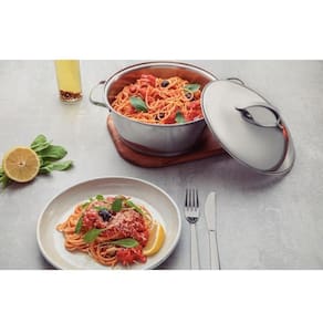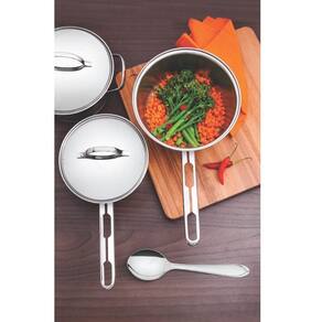 Jogo de Panelas 4 Peças + Cozi-Vapore Allegra em Aço Inox Fundo Triplo Tramontina - Conteúdo do Jogo01 Caçarola Funda com Tampa - Diâmetro: 16 cm | Altura: 13,9 | Capacidade: 1,5 litros
