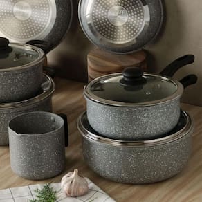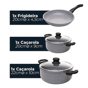 Jogo panelas 5 peças fogão indução antiaderente cerâmico Funcionais, duráveis e cheias de estilo, nossas panelas e frigideiras são pensadas para facilitar o seu dia a dia na cozinha. Com revestimentos antiaderentes, excelente condução de calor e design sofisticado, oferecem o equilíbrio ideal entre praticidade e beleza. Seja para preparar receitas simples ou pratos elaborados, e podendo ser Utilizado em qualquer fogão, além do de indução. Revestimento cerâmico antiaderente que permite cozinhar com menos gordura, garantindo uma alimentação mais saudável e uma limpeza prática após o uso. A tampa de vidro com saída de vapor oferece controle visual total durante o preparo, mantendo o sabor, a umidade e a temperatura dos alimentos. Características do produto Material: alumínio Cor: cinza granillite Medidas: frigideira 20cm x 4,5cm / leiteira 14cm x 12cm / panela 16cm x 7cm / caçarola 20cm x 9cm / caçarola 22cm x 10cm Marca: wolff Linha: gourmet Imagens ilustrativas e dimensões aproximadas, os demais produtos não acompanham o item. As cores podem variar de acordo com a tela do celular ou computador. Itens inclusos: 1 leiteira fervedor 1 frigideira 2 caçarolas 1 panela Limpeza e conservação Não usar abrasivos e produtos químicos como removedores de gordura, água sanitária, limpa vidros. Marca: Não Informado Ean: 7895730210835