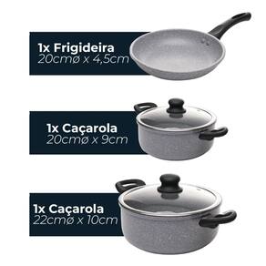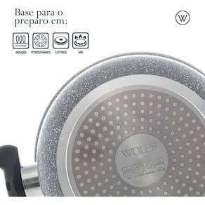 Jogo panelas 5 peças fogão indução antiaderente cerâmico Funcionais, duráveis e cheias de estilo, nossas panelas e frigideiras são pensadas para facilitar o seu dia a dia na cozinha. Com revestimentos antiaderentes, excelente condução de calor e design sofisticado, oferecem o equilíbrio ideal entre praticidade e beleza. Seja para preparar receitas simples ou pratos elaborados, e podendo ser Utilizado em qualquer fogão, além do de indução. Revestimento cerâmico antiaderente que permite cozinhar com menos gordura, garantindo uma alimentação mais saudável e uma limpeza prática após o uso. A tampa de vidro com saída de vapor oferece controle visual total durante o preparo, mantendo o sabor, a umidade e a temperatura dos alimentos. Características do produto Material: alumínio Cor: cinza granillite Medidas: frigideira 20cm x 4,5cm / leiteira 14cm x 12cm / panela 16cm x 7cm / caçarola 20cm x 9cm / caçarola 22cm x 10cm Marca: wolff Linha: gourmet Imagens ilustrativas e dimensões aproximadas, os demais produtos não acompanham o item. As cores podem variar de acordo com a tela do celular ou computador. Itens inclusos: 1 leiteira fervedor 1 frigideira 2 caçarolas 1 panela Limpeza e conservação Não usar abrasivos e produtos químicos como removedores de gordura, água sanitária, limpa vidros. Marca: Não Informado