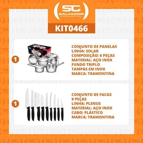 1 - jogo de panelas com fundo triplo corpo e tampa em inox 6 pçs - solar - tramontina
