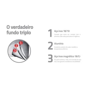 - fundo triplo: aço inox + alumínio + aço inox