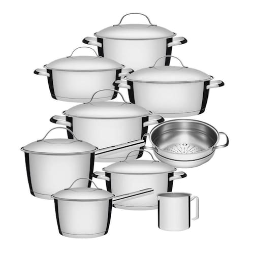 Jogo de Panelas 9 Peças Allegra com Cozi-Vapore e Fervedor em Aço Inox Fundo Triplo Tramontina - Na sua casa!