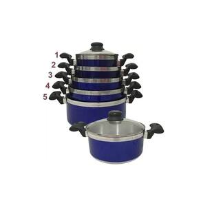 Jogo de panelas colorida com tampa de vidro temperado, composto por 5 peças, na cor azul, confeccionada em alumínio repuxado de alta qualidade, tampa com válvula de escape anti-pressão. Panelas de tamanhos variados, ideais para cada uma de suas receitas, produto com um belo acabamento, material de qualidade comprovada. Sua cozinha vai ficar moderna e ganhar em qualidade. Indicada para cozimento de alimentos em geral.