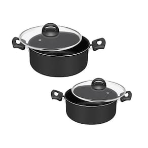 Jogo panelas antiaderente tampa de vidro 13 peças - preto Comprar um conjunto de panelas é uma ótima opção para quem quer trocar os utensílios da cozinha e economizar, tudo de forma vantajosa, você terá; praticidade, harmonização da cozinha e variedade de produtos. O conjunto possuí 13 panelas antiaderentes que facilitam o momento de cozimento, pois impede que a comida grude, e auxiilia na limpeza do item também. torne sua cozinha ainda mais equipada para que você possa realizar todas suas receitas preferidas, além disso, as panelas são leves, permitindo que você leve-as onde for.O material de alumínio auxilia no momento de cozimento, fazendo com que a comida fique pronta rapidamente, a panela possuí também cabos de baquelite, que diminuem a chance de acidentes com queimaduras.