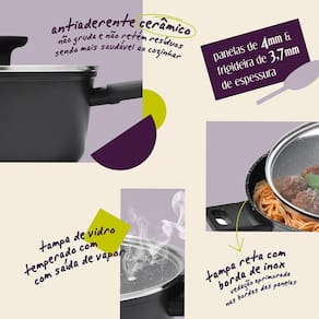 resistentes e modernas, são perfeitas para fazer suas receitas favoritas! elas têm antiaderente cerâmico de alto desempenho: evitam que os alimentos grudem e são livre de toxinas! as panelas são forjadas: o processo confere maior durabilidade, distribuição de calor mais uniforme e melhora na retenção de calor, permitindo que a panela aqueça rapidamente e mantenha a temperatura.