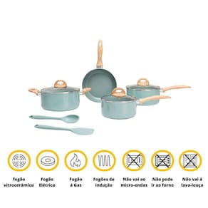 As panelas contam com revestimento Pro Ceramic Premium antiaderente Mineral Resist, o que torna o preparo de pratos mais saudável, pois cozinha com menos óleo, e a limpeza mais prática. A colher e a espátula em silicone não são abrasivas, suportam altas temperaturas e impedem o acúmulo de bactérias.