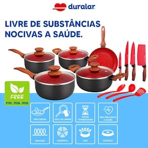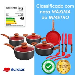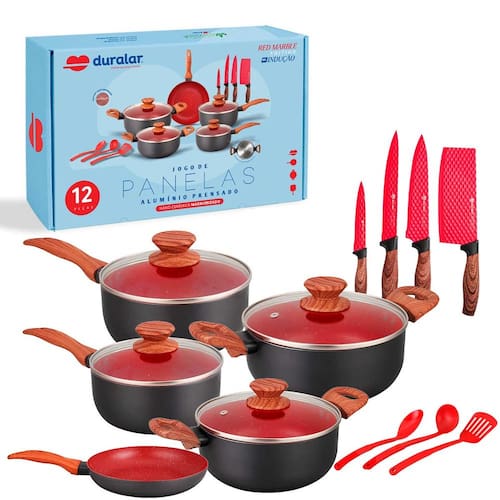 Leve tecnologia, desempenho e sofisticação para sua cozinha com o Jogo de Panelas Duralar Red Marble de 12 peças.