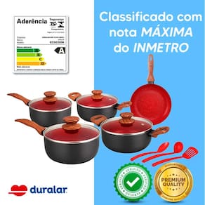 Leve tecnologia, desempenho e sofisticação para sua cozinha com o Jogo de Panelas Duralar Red Marble de 8 peças.