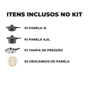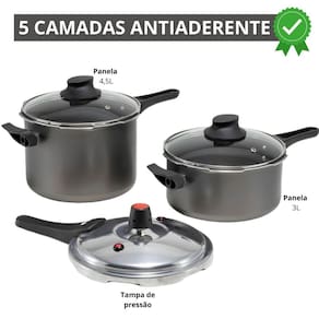 Jogo de Panelas 2 em 1 Fechamento Externo e Tampa de Vidro Marcolar A Panela Antiaderente com Fechamento Externo da Marcolar é a solução ideal para quem busca praticidade na cozinha, permitindo preparar refeições saborosas de maneira rápida e eficiente. Essa panela oferece conveniência incomparável. Com duas opções de tampas, você pode cozinhar com a tampa e, logo em seguida, trocar para a tampa de vidro e levar a panela diretamente à mesa. Economize tempo e reduza o número de louças a serem lavadas, sem abrir mão de um design sofisticado. Além disso, o fechamento externo proporciona maior segurança e facilidade no manuseio, enquanto as tampas de vidro temperado com saída de vapor asseguram um cozimento uniforme. DIFERENCIAIS - Fechamento Externo: Mais seguro e fácil de manusear, oferecendo um uso prático no dia a dia. - Revestimento Antiaderente: Evita que os alimentos grudem, facilitando tanto o preparo quanto a limpeza. - Tampas de Vidro: Duas tampas com saída de vapor para servir diretamente à mesa sem perder o calor dos alimentos. ESPECIFICAÇÕES TÉCNICAS Material: Alumínio Cor: Preto Compatibilidade: Ideal para fogões a gás ITENS INCLUSOS 01 Panela 4,5L 01 Panela 3L 02 Tampas de Vidro 02 Descansos de Panela Leve a praticidade e qualidade Marcolar para sua cozinha e transforme suas refeições Marca: Não Informado