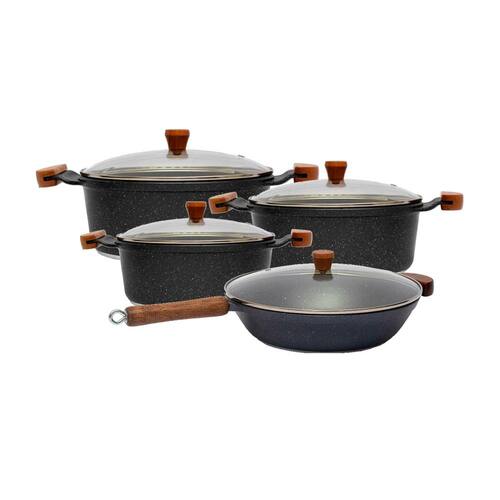 Jogo Panelas Granito AM 18 20 24 e Frigideira 24cm Javali As caçarolas e frigideiras antiaderente, também conhecidas como teflon, são revestidas com uma substância capaz de repelir certas substâncias. Por isso, a comida não gruda nela. É resistente a altas temperaturas e a arranhões. As caçarolas e frigideiras em alumínio antiaderente contam com uma camada que cobre o seu material e evita que o alimento grude em seu interior. Dessa forma, contribuem para uma culinária saudável, dispensando o uso excessivo de gordura ou óleos vegetais. Para quem gosta de um peixe ou filé de frango grelhado, ou não dispensa uma omelete delicioso, não pode deixar de ter uma em sua cozinha. Manutenção e Dicas:1. Evite grandes mudanças de temperatura. (Levar uma frigideira quente para a água fria pode fazer com que a frigideira deforme.)2. Limpe suas frigideiras antiaderentes com esponjas que não causem riscos.3. Use detergentes mais suaves para limpar suas frigideiras antiaderentes.4. Não use metal na sua frigideira antiaderente.5. Não é ideal para máquina lava louças.6. Evite altas temperaturas de cozimento.7. Não deixe a frigideira vazia no fogo. Especificações Técnicas:Revestimento Externo: Antiaderente Marmorizado Granito.Revestimento Interno: Antiaderente Marmorizado Granito.Caçarolas: Alça de Madeira e Tampa de Vidro.Frigideira: Cabo em Baquelite Sem Tampa. Medidas Caçarolas:Litragem: 1,7L.Largura: 18cm.Altura: 10cm.Peso: 1Kg. Litragem: 2,3L.Largura: 20cm.Peso: 1,15Kg.Altura: 9cm Litragem: 3,6L.Largura: 24cm.Peso: 1,550Kg.Altura: 10cm. Medidas Frigideira:Litragem: 1,750ml.Largura: 24cm.Peso: 1,300Kg.Altura: 7cm. Itens Inclusos:01 Jogo Panelas Granito AM 18,20,24 e Frigideira 24cm Gourmet Javali. Código: 2170JAVProdutoLojaPlast.