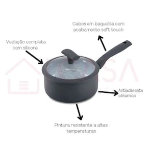 Jogo de Panelas Hercules Revestimento Ceramico Indução 4 Peças Antiaderente Cinza Descrição: A linha Soft Touch da Hercules garante melhor desempenho, funcionalidade e qualidade para a sua cozinha e no preparo das refeições. Com revestimento antiaderente cerâmico. Produzida com materiais resistentes: Alumínio, silicone, vidro e baquelite. Ideal para uso em fogão convencional, fogão halogênio e de indução. Não utilizar no forno, micro-ondas, geladeira e freezer. Sua cozinha pode ser prática, saudável e muito bonita. As panelas da Hércules oferecem o que há de mais moderno para o preparo das refeições diárias. Características: Espessura de 3 milímetros, tampa de vidro com acabamento em silicone, além de muito bonita causa impressão de sofisticação na cozinha. Os cabos em silicone soft touch dão maciez e estabilidade no manuseio da panela além de serem isotérmicos e não esquentarem. O Interior antiaderente em cerâmica facilita o preparo e a limpeza além de não liberar componentes tóxicos na preparação dos alimentos, a construção da panela com fundo especial possibilita sua utilização. - Pode ir em lava-louças; - Pode ir em fogões por indução; - Material Panelas, frigideira e caçarolas : Alumínio, Silicone, Vidro e Baquelite. Composição: Quantidade 4 Peças; 1- Caçarola 20 x 9 cm - espessura 3mm - 2.5L; 1- Panela 18 x 9 cm - espessura 3mm - 1.75L; 1- Panela 20 x 9 cm - espessura 3mm - 2.5L; 1- Frigideira 20 x 5cm - espessura 3mm - 1.2L; Especificações: Marca: Hércules; Modelo: Soft Touch; : 3 meses. Marca: Não Informado Ean: 7908975266472