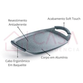 Jogo de Panelas Hercules Revestimento Ceramico Indução 6 Peças Antiaderente Cinza Descrição: A linha Soft Touch da Hercules garante melhor desempenho, funcionalidade e qualidade para a sua cozinha e no preparo das refeições. Com revestimento antiaderente cerâmico. Produzida com materiais resistentes: Alumínio, silicone, vidro e baquelite. Ideal para uso em fogão convencional, fogão halogênio e de indução. Não utilizar no forno, micro-ondas, geladeira e freezer. Sua cozinha pode ser prática, saudável e muito bonita. As panelas da Hércules oferecem o que há de mais moderno para o preparo das refeições diárias. Características: Espessura de 3 milímetros, tampa de vidro com acabamento em silicone, além de muito bonita causa impressão de sofisticação na cozinha. Os cabos em silicone soft touch dão maciez e estabilidade no manuseio da panela além de serem isotérmicos e não esquentarem. O Interior antiaderente em cerâmica facilita o preparo e a limpeza além de não liberar componentes tóxicos na preparação dos alimentos, a construção da panela com fundo especial possibilita sua utilização. - Pode ir em lava-louças; - Pode ir em fogões por indução; - Material Panelas, frigideira e caçarolas : Alumínio, Silicone, Vidro e Baquelite. Composição: Quantidade 6 Peças; 1- Caçarola 24 x 10 cm - espessura 3mm - 2.5L; 1- Caçarola 20 x 9 cm - espessura 3mm - 2.5L; 1- Panela 18 x 9 cm - espessura 3mm - 1.75L; 1- Panela 20 x 9 cm - espessura 3mm - 2.5L; 1- Frigideira 20 x 5cm - espessura 3mm - 1.2L; 1- Grill 30 x 1cm - espessura 3mm - 0,8L; Especificações: Marca: Hércules; Modelo: Soft Touch; : 3 meses. Marca: Não Informado Ean: 7894949791609