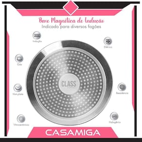 Para compor seus artigos de cozinha e deixar seu momento ainda mais prazeroso, o conjunto de panelas Ceramic Class é perfeita. Design moderno, tampas de vidro temperado com saída de vapor e alças em baquelite com revestimento Soft-Touch que garantem conforto e maior segurança. Trata-se de um item de 3,7 mm, sendo sua qualidade uma das melhores do mercado;