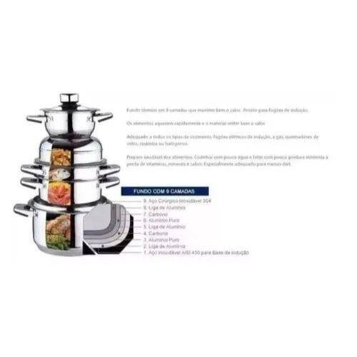 Jogo De Panelas 19 Pçs Aço Cirúrgico Inox 9 Camadas