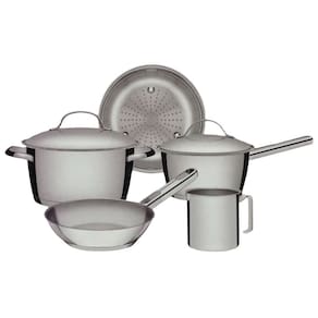 o jogo de panelas tramontina 5 peças da linha allegra vai virar seu melhor amigo na cozinha. São projetadas para facilitar a preparação das mais variadas receitas. Elas são produzidas em aço inox e trazem a alta durabilidade e bom gosto do material. São ainda muito estilosas, tornando a aparência da sua cozinha e mesa mais interessante e bonita. Apresentam ainda fundo triplo aço inox + alumínio + aço inox , característica que distribui o calor de forma igual,