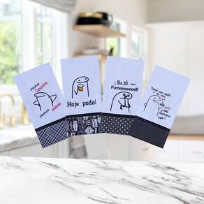 Adicione diversão à sua cozinha com nossos Panos de Prato Bordado Coleção Humor Flork Bentô. Personalidade única, sacaria pé de galinha e muito bom humor em cada peça. Transforme sua rotina culinária com estilo Características do produto: - Conteúdo: 04 Panos de prato, medindo 48cm de largura x 68cm de comprimento cada pano; Composição: - 100% Algodão e sacaria pé de galinha, para garantir qualidade e proporcionar suavidade ao toque e máxima absorção; Estampas do Barrado: - Cada kit é único, com bordados minimalistas do inconfundível Meme Bento Florks adicionando um toque de humor único, podendo apenas variar as estampas do barrado como: poá, xadrez ou chevron preto e branco, barrado sendo com 8cm, enviado conforme nosso ; Acabamento: - Detalhes cuidadosos com overloque; Decoração e Funcionalidade: - Além de decorar, esses panos de prato são feitos de tecido 100% algodão e sacaria pé de galinha, garantindo máxima absorção e eficiência ao secar.