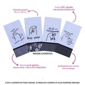 Adicione diversão à sua cozinha com nossos Panos de Prato Bordado Coleção Humor Flork Bentô. Personalidade única, sacaria pé de galinha e muito bom humor em cada peça. Transforme sua rotina culinária com estilo Características do produto: - Conteúdo: 04 Panos de prato, medindo 48cm de largura x 68cm de comprimento cada pano; Composição: - 100% Algodão e sacaria pé de galinha, para garantir qualidade e proporcionar suavidade ao toque e máxima absorção; Estampas do Barrado: - Cada kit é único, com bordados minimalistas do inconfundível Meme Bento Florks adicionando um toque de humor único, podendo apenas variar as estampas do barrado como: poá, xadrez ou chevron preto e branco, barrado sendo com 8cm, enviado conforme nosso ; Acabamento: - Detalhes cuidadosos com overloque; Decoração e Funcionalidade: - Além de decorar, esses panos de prato são feitos de tecido 100% algodão e sacaria pé de galinha, garantindo máxima absorção e eficiência ao secar.
