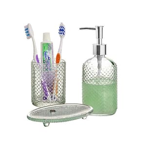 Jogo para banheiro para manter a organização da casa de maneira que traga bem estar, comodidade e elegância ao mesmo tempo. Esse jogo para banheiro contém três peças em vidro e com detalhes delicados. Marca: Hauskraft Características: -cor: Verde. -material: Vidro e Abs. -capacidade dispenser de sabonete líquido: 400ml. -capacidade copo multiuso: 310ml. -espessura dispenser de sabonete líquido: 0,45cm.. -espessura saboneteira: 0,72cm. -espessura copo multiuso: 0,50cm.. -dispenser de sabonete líquido: 7,5 x 7,5 x 19cm. -saboneteira: 16,3 x 9,8 x 1,8cm.. -copo multiuso: 7,5 x 7,5 x 9,8cm. Conteúdo: -1 Dispenser para sabonete líquido. -1 Saboneteira. -1 Copo multiuso. Aplicação: Ideal para deixar seu banheiro organizado e elegante. Código: PSBL021VD Marca: Não Informado Ean: 7896980404661
