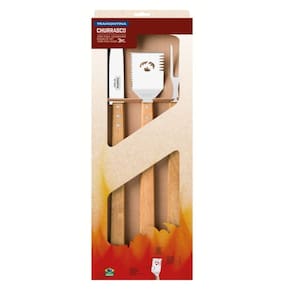 Jogo para Churrasco 3 Peças em Aço Inox e Madeira Tramontina